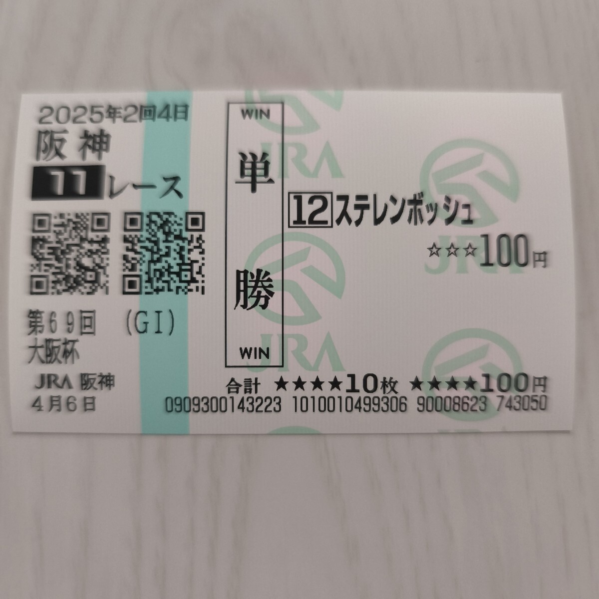 - 【2025.4.6 大阪杯】現地単勝馬券☆ステレンボッシュ☆JRA 匿名配送
