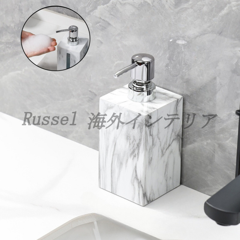 - ソープディスペンサー エレガント 大理石調 手動 レジン製 おしゃれ かわいい インテリア 洗面台 ハンドソープ バスルーム 白 ゴールド