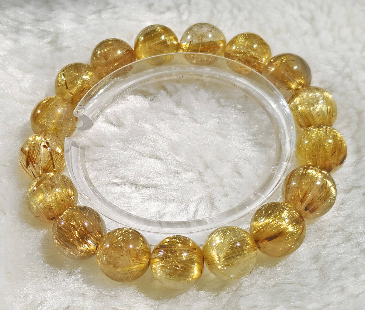 - N00623◆Bigstone◆新品*11.5mm*ブラジル産*美品【7Aゴールドタイチンルチル】天然石ブレス