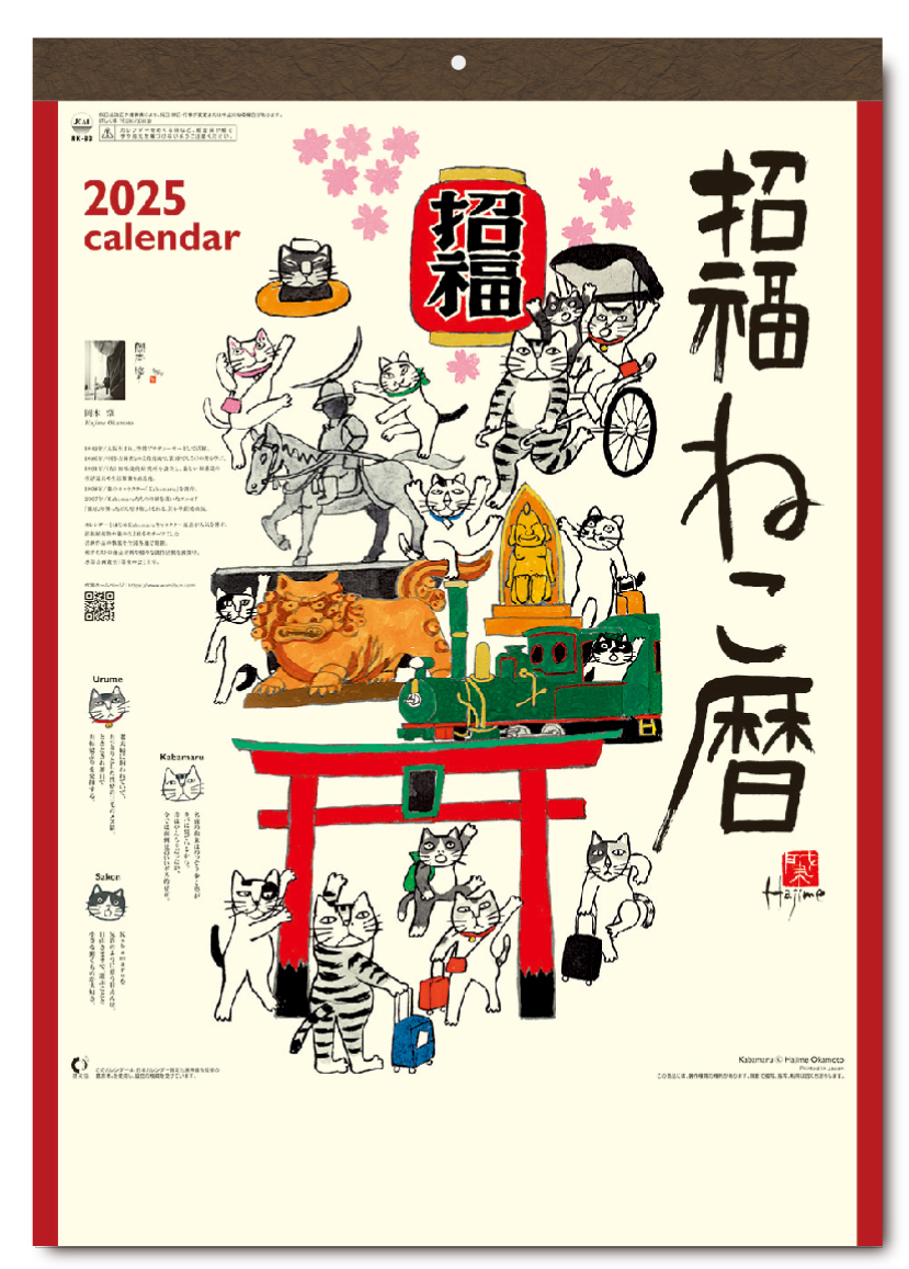 - 壁掛けカレンダー 2025年 招福ねこ暦 岡本肇 イラスト NK83