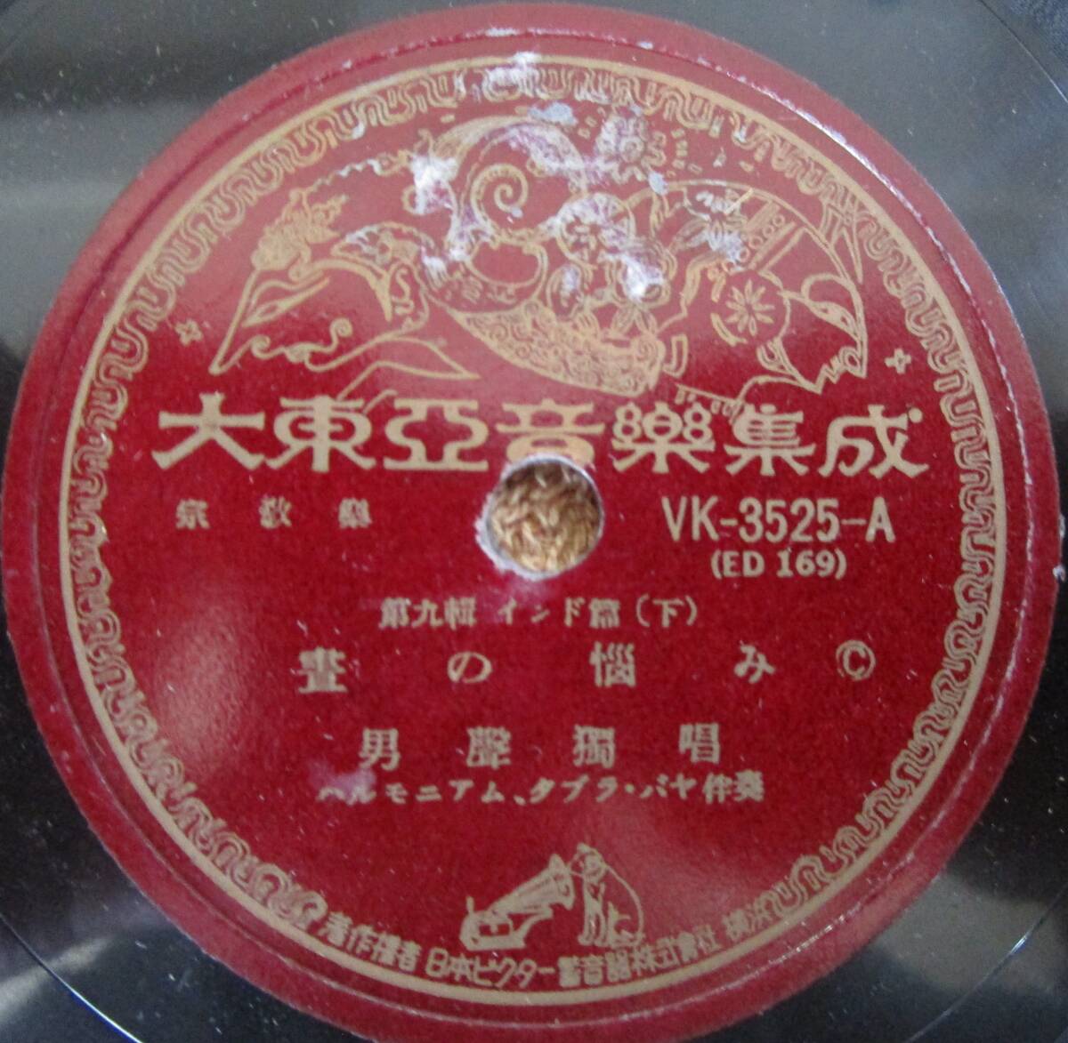 - SP盤SPレコード 国内盤 民族音楽 大東亜音楽集成 第9輯 男性独唱 女性独唱 ハルモニウム、タブラ、バヤ伴奏(ビクター)ヒビあり