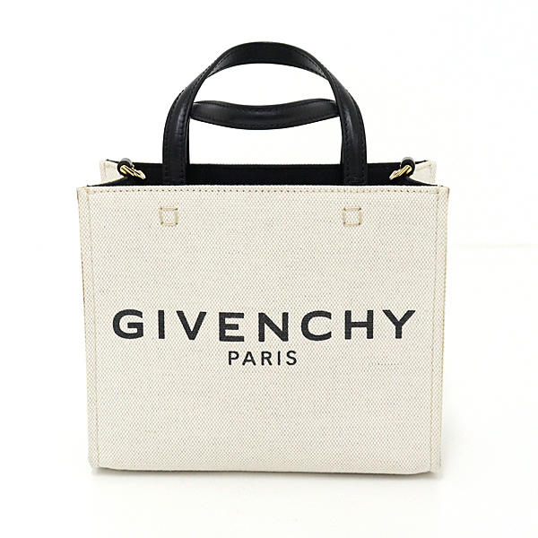 > GIVENCHY ジバンシィ Gトート ミニ ベージュ/ブラック リネン&コットン/カーフ ショルダー 3WAY 未使用品
