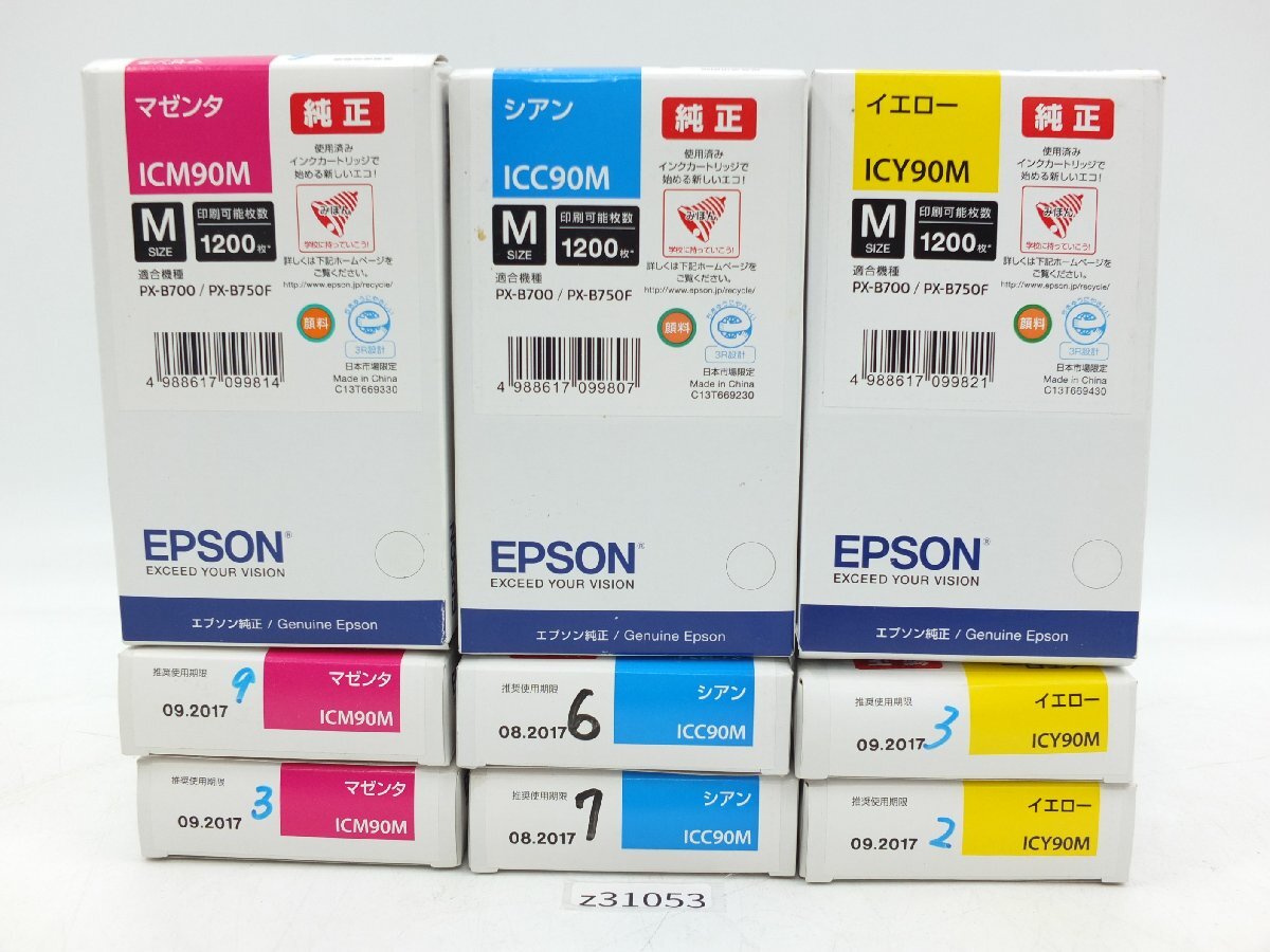 > 【z31053】新品・未使用 EPSON エプソン ICM90M ICC90M ICY90M マゼンタ シアン イエロー9箱まとめ 純正カードリッジセット