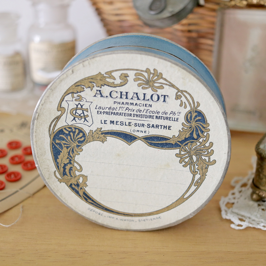 - 『手のひらほどの大きな丸い薬箱 』1900年 フランス アンティーク 紙箱 薬の紙箱 丸い箱 ファーマシーボックス 缶 ギフトボックス :A