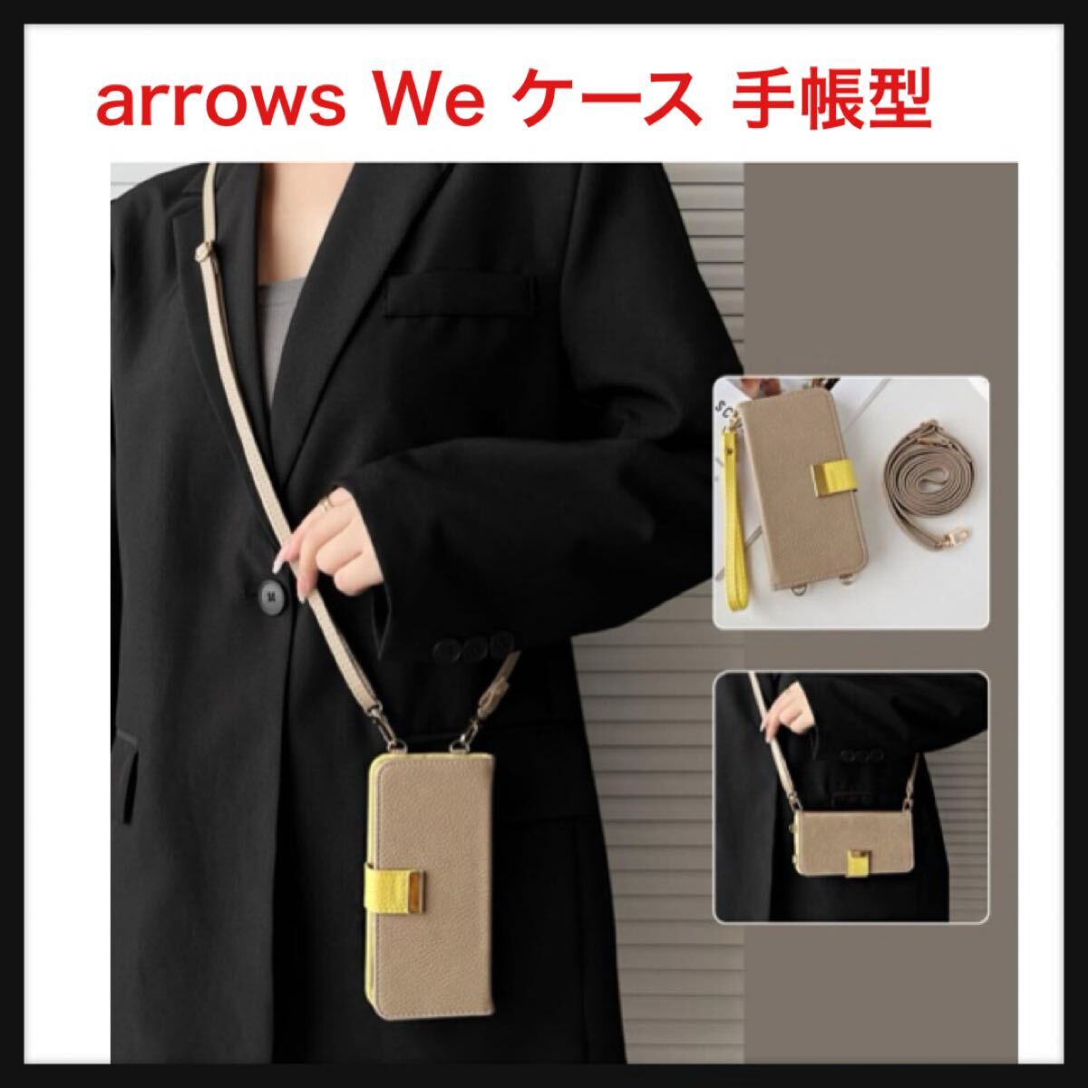 - 【開封のみ】Satomirai★arrows We ケース 手帳型 おしゃれ ショルダー バイカラー アローズ 富士通 ウィー ケース アプリコットxイエロー