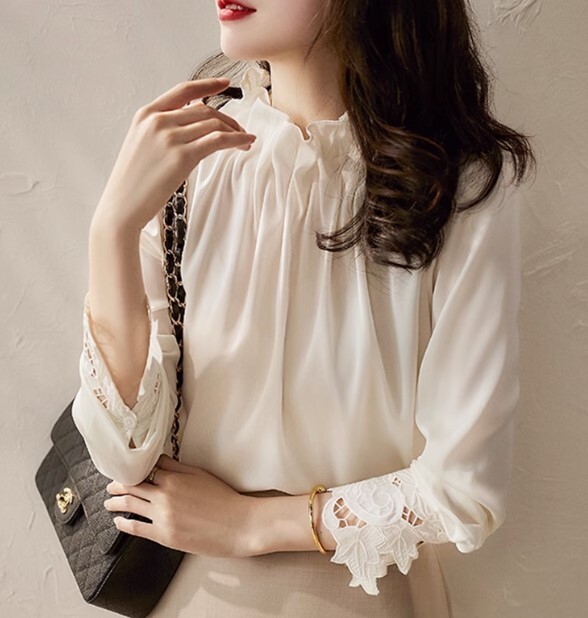 - ★★★レディース トップス シャツ ブラウス レース フリル襟 FX25