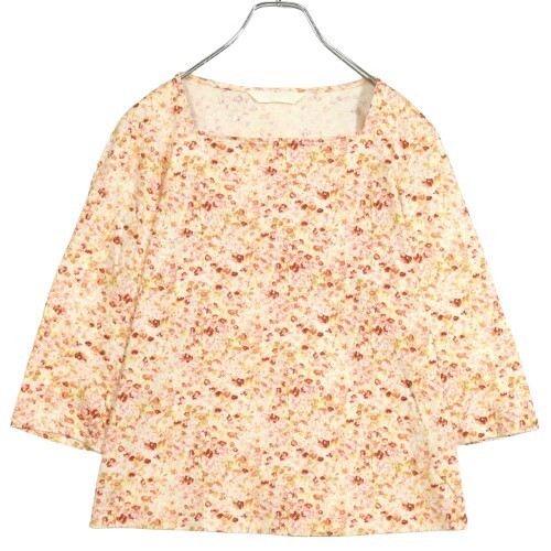 - ピンクハウス★スクエアネックカットソー 大きいサイズL 赤×ピンク×緑系 花柄 レターパック可 z12622