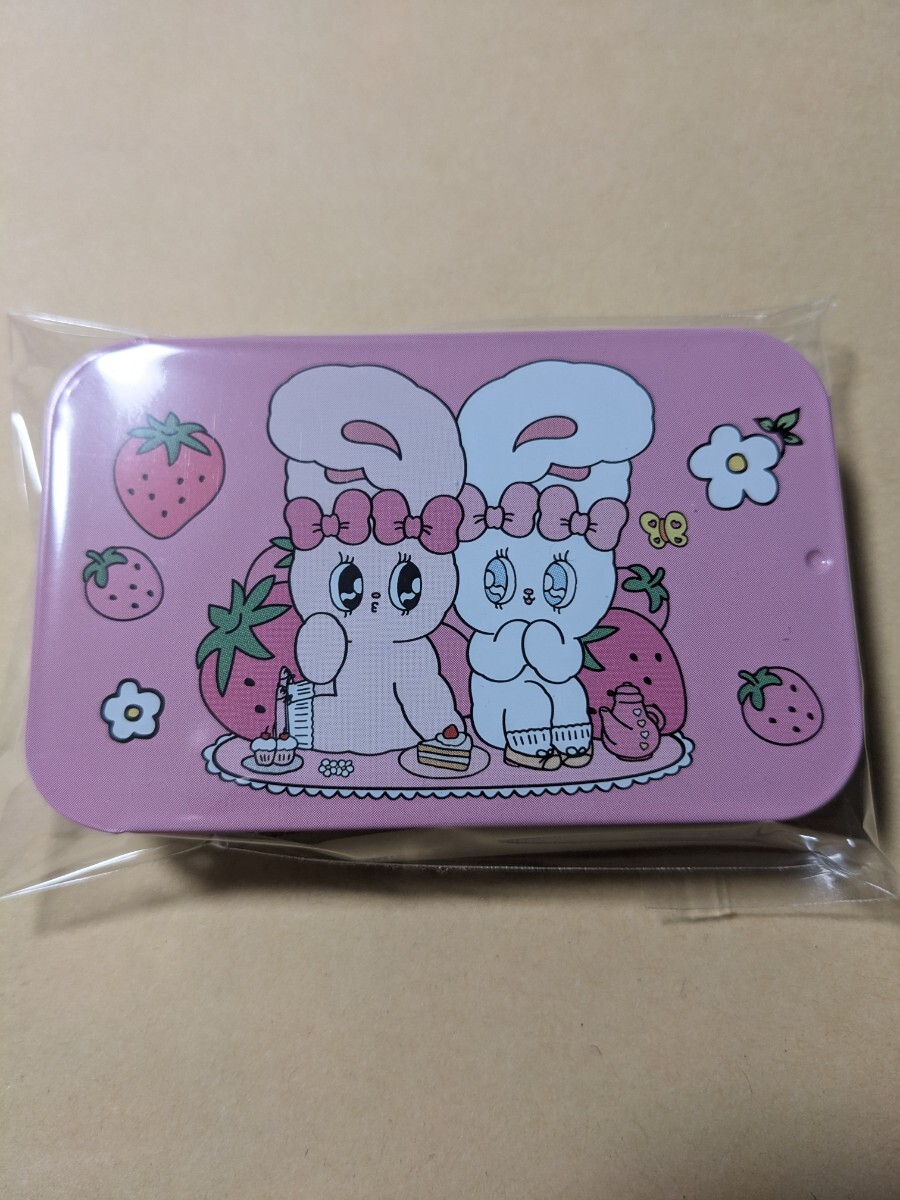 - エスターバニー すらいどきゃん eSTHeR BUNNY スライド缶のみ ラムネなし ピンク背景 うさぎ2匹 いちご柄 缶ケース 食玩 匿名配送 BANDAI