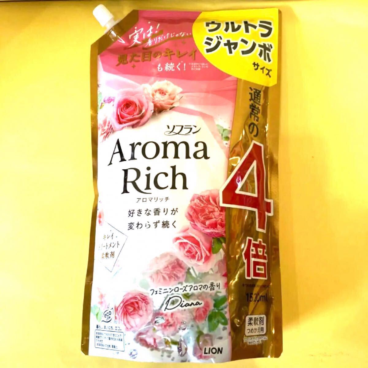 - 【ソフランアロマリッチ1520ml】フェミニンローズアロマの香り Diana ダイアナ AromaRich ウルトラジャンボサイズ 通常の4倍 柔軟剤 詰替用