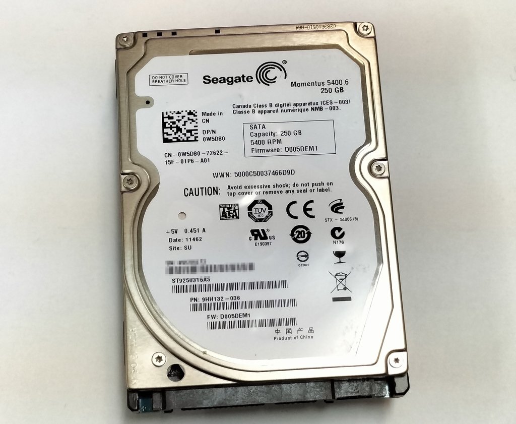 ノートPCなどに搭載されることの多い 2.5インチ/約9.5mm厚 タイプのHDDです。