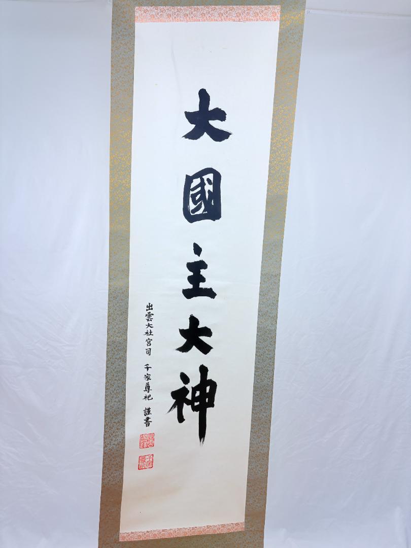 - 出雲大社宮司 千家尊祀 書『大国主大神』 掛け軸 木箱付 #688900