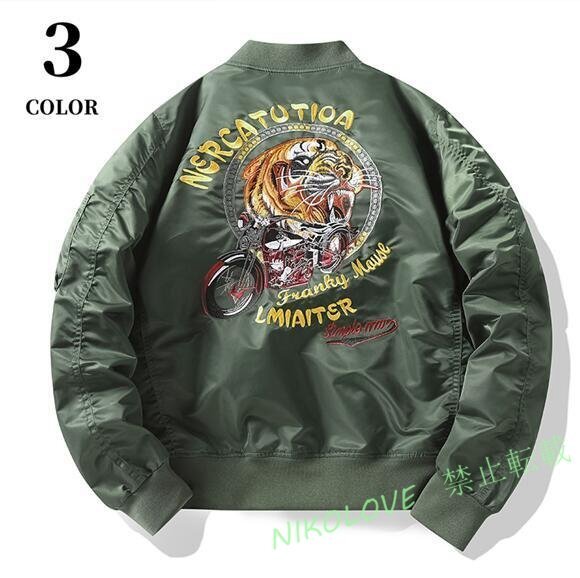 - 新品 フライトジャケット虎刺繍 空軍 スタジャン 野球服 ミリタリージャケット メンズ 欧米風アウター ヴィンテージM~4XL