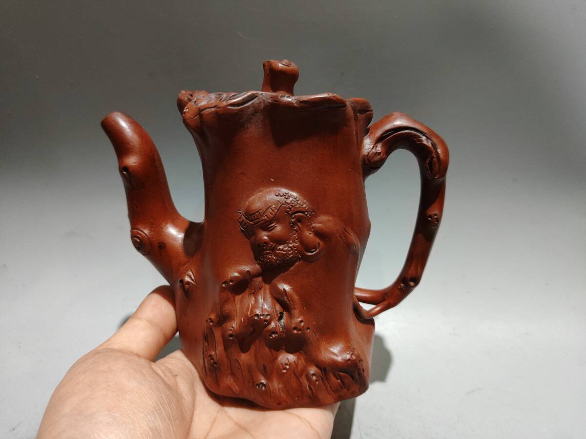 - 蔵友館蔵 古原鉱紅泥製 達摩樹壺 陳明遠製款 紫砂壺 精品壺 煎茶道具 茶道具 極細工 古賞物 古美味 東洋彫刻 時代物 骨董 中国古美術