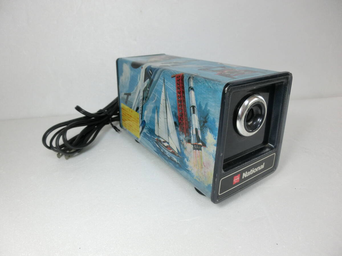 - 当時もの National ナショナル 昭和レトロ 鉛筆削り器 電動 金属製 JAL F1 JA8727 スペースシャトル柄 動作品