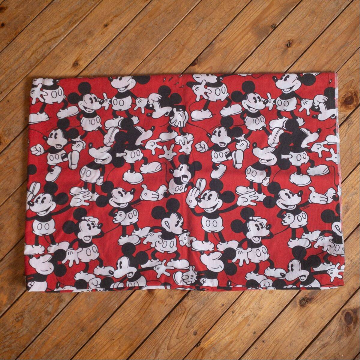 > USAヴィンテージ ベッドシーツ Disney ミッキーマウス リメイク生地 素材 総柄 レッド 赤 フラットシーツ アメリカ仕入 B2510