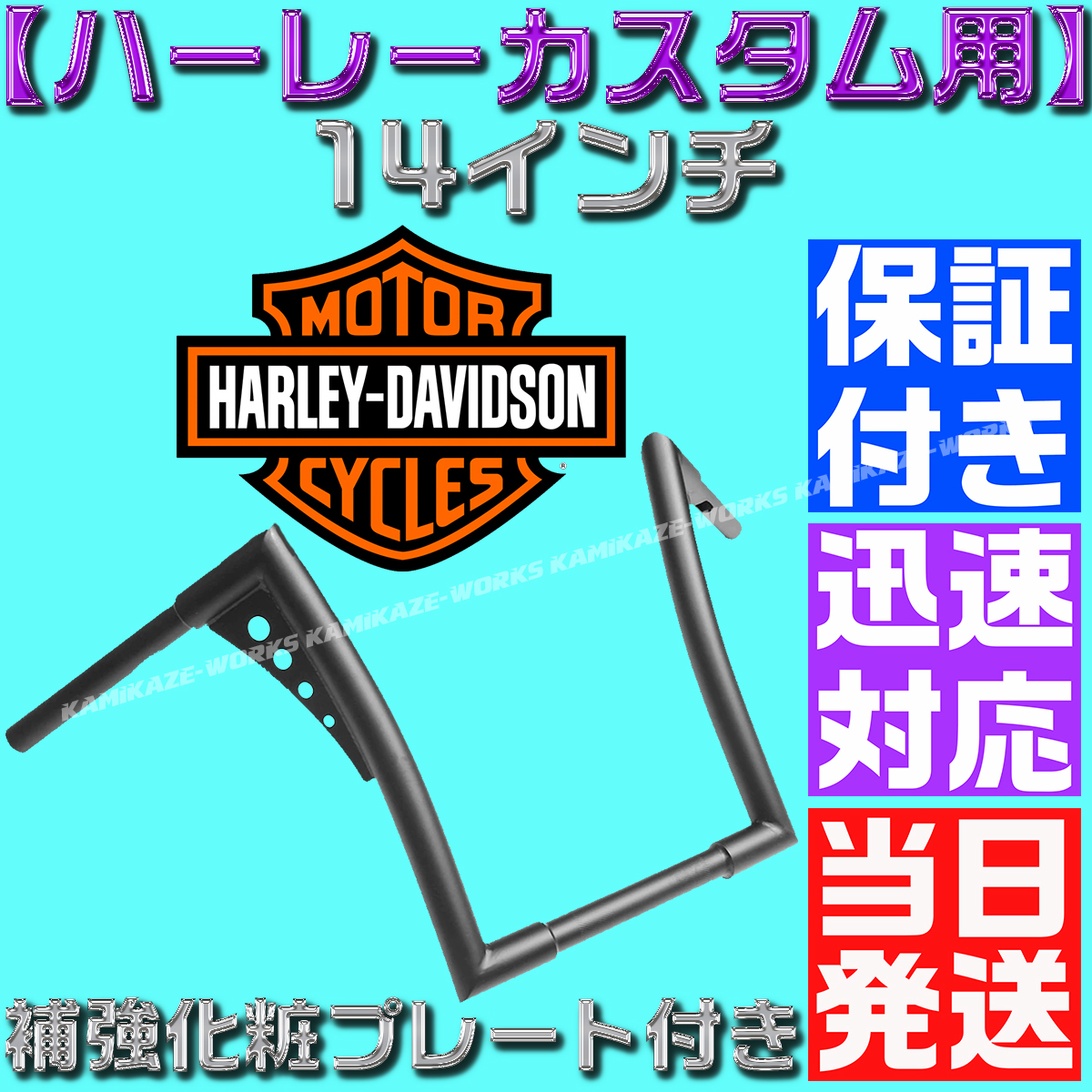 > 【当日発送】【保証付】ブラック ハーレーカスタム ハンドルバー 14インチ 1インチ ボバースタイル スポーツスター ダイナ ボブ ソフテイル