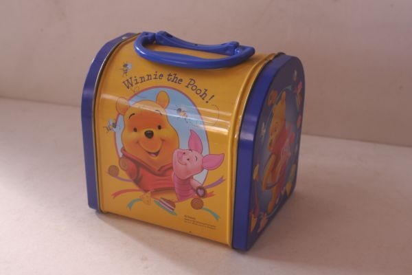 - くまのプーさん お菓子の空き缶 ボックス(空) ブリキ缶 お菓子缶 サイズ:約15.5×12.5×H15㎝/25N4.3-52