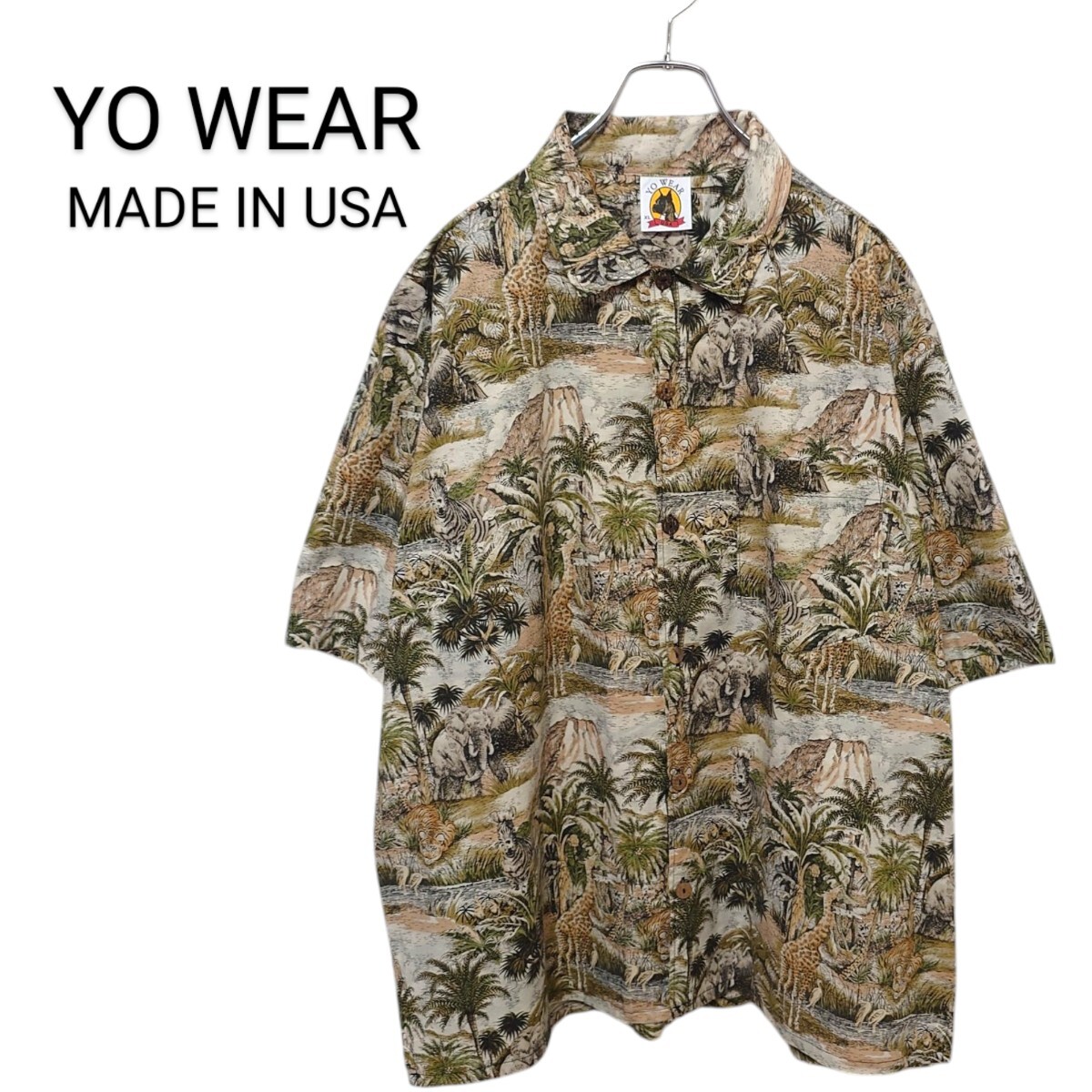 - 【YO WEAR】USA製 総柄 アニマル サファリ アロハシャツ A-3422