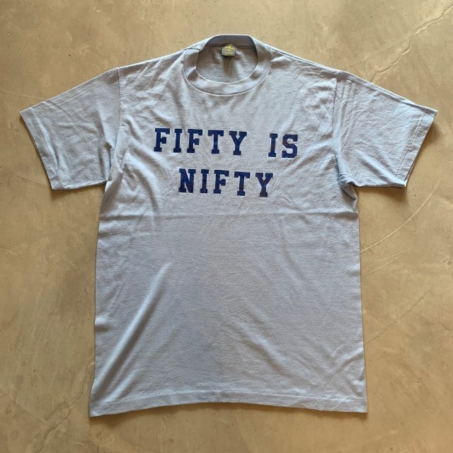 > 【L】80s USA製 JERZEES「FIFTY IS NIFTY」プリントTシャツ 水色■ビンテージ オールド アメリカ古着 ラッセル シングルステッチ