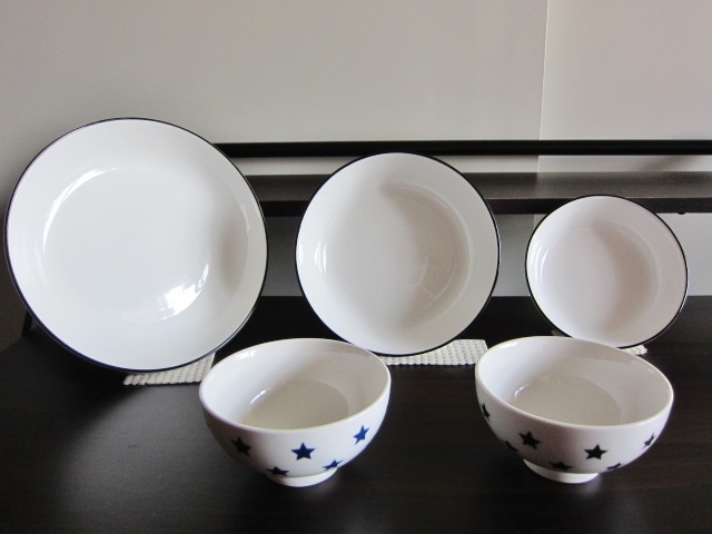 > 新品同様 Franc franc キッチン アイテム 極美品 食器 お皿 3点セット 星模様 未使用 茶碗2個 新生活応援 便利グッズ 美品 皿 5点セット