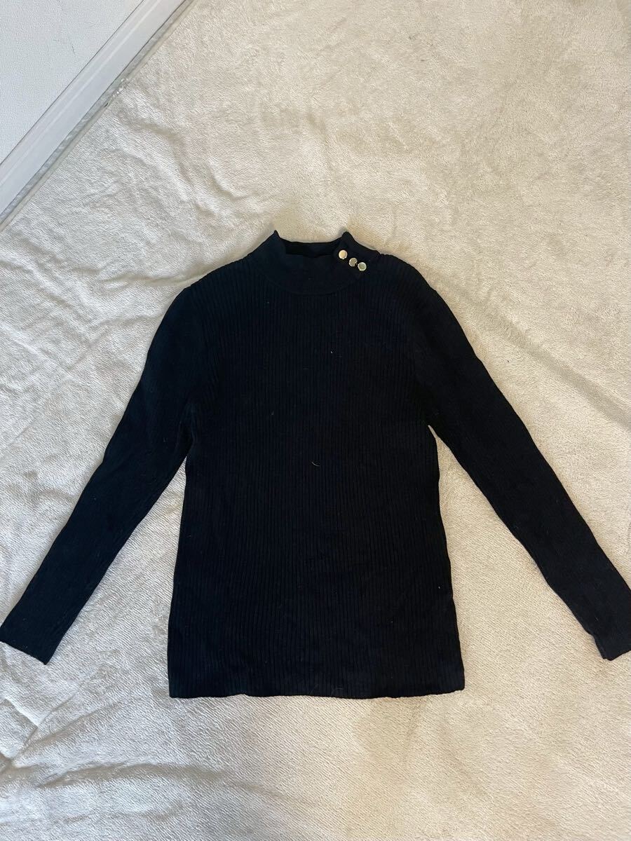 - Healthy Karen ハイネック リブ網み ボタン付きニット