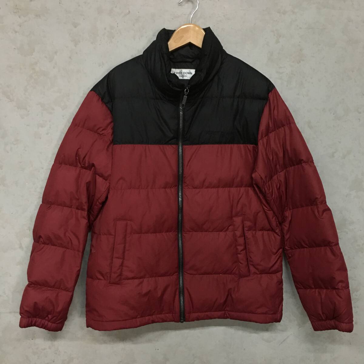 > FNY22/33 FIRST DOWN THE BASIC ファーストダウン ダウンジャケット M ブラック×レッド 軽量 ダウン80% フェザー20% 古着 メンズ〇
