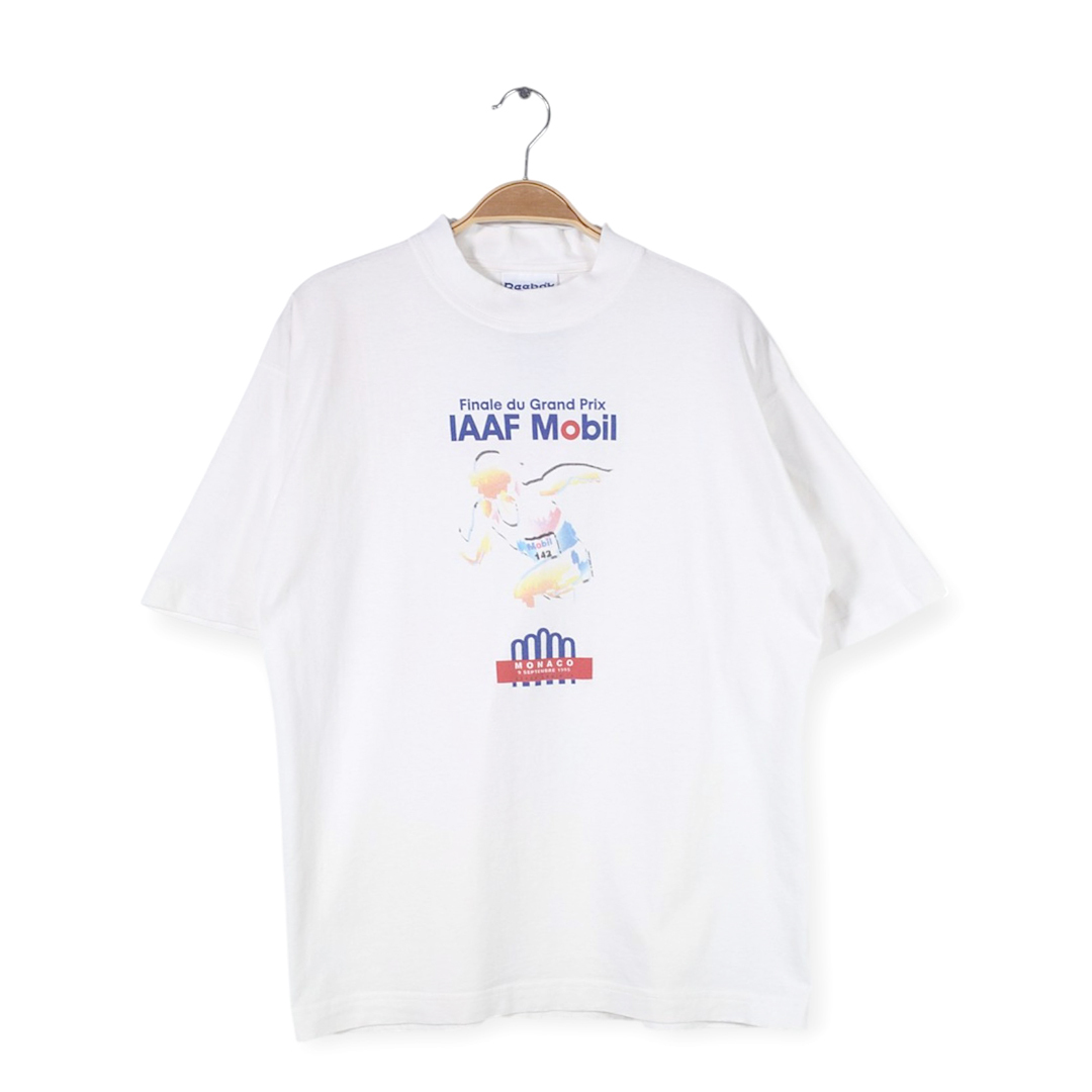 - 【送料無料】90s リーボック USA製 ヴィンテージTシャツ IAAFグランプリファイナル IAAF MOBIL ホワイト 陸上 NIKE メンズL 古着 @BE0028