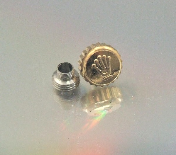 - ◆ 修理交換用パーツ ■ 6mm リューズ・チューブのセット ★ スプリング式 ◆ パッキン内蔵 ◆ 金色・王冠マーク刻印 ◆ 対応品 ◆