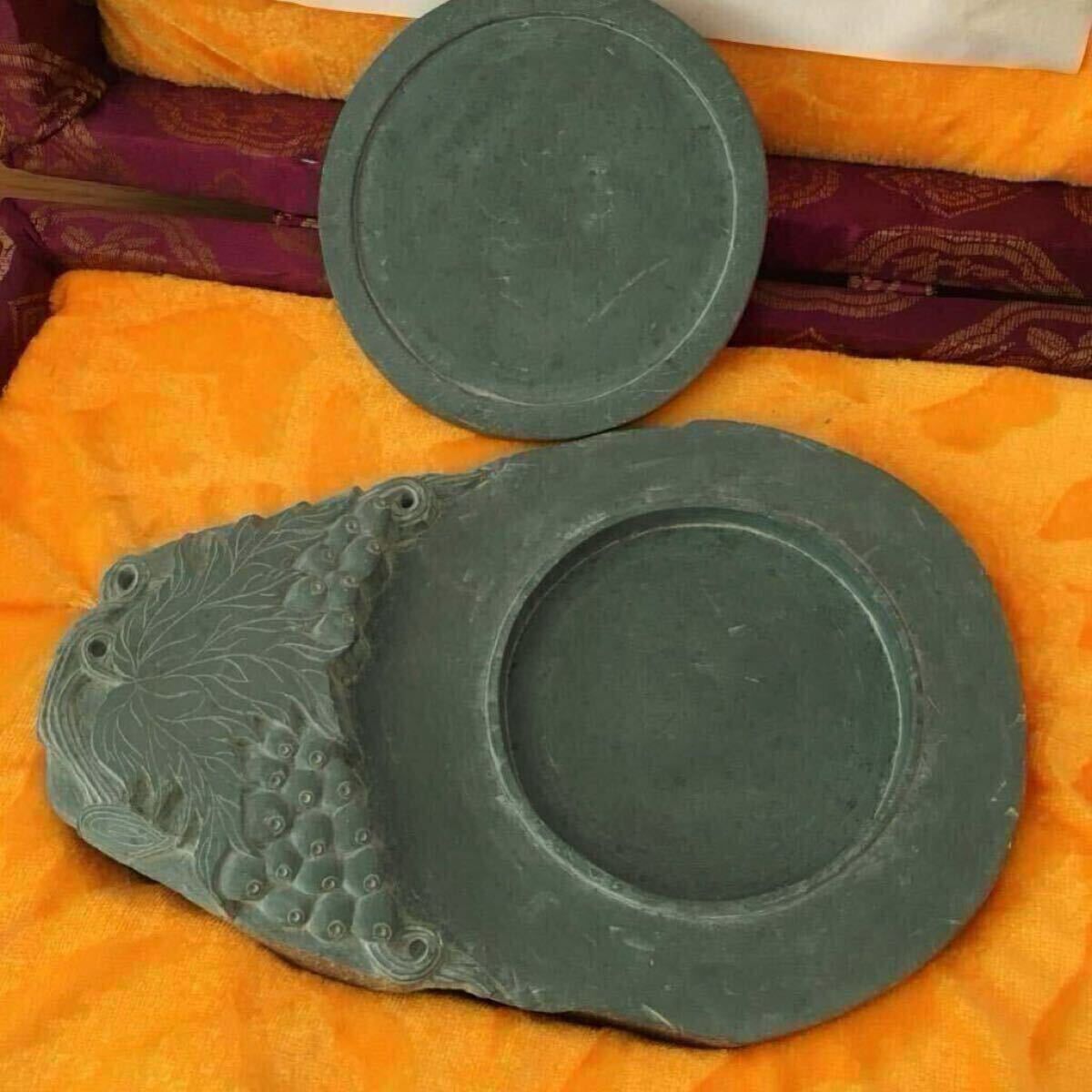 - 未使用真品古とう硯緑石硯★超希少九十年代tao硯890g箱付収蔵