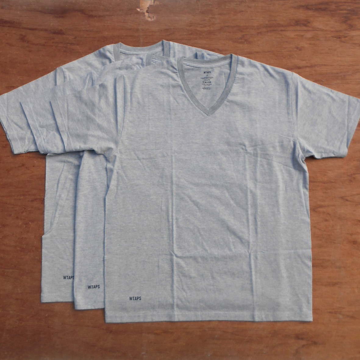 - 未使用 WTAPS SKIVVIES T-SHIRT 3枚セット 半袖 Tシャツ Vネック S ミックスグレー 霜降り灰 パック 黒ロゴ ダブルタップス ネイバーフッド