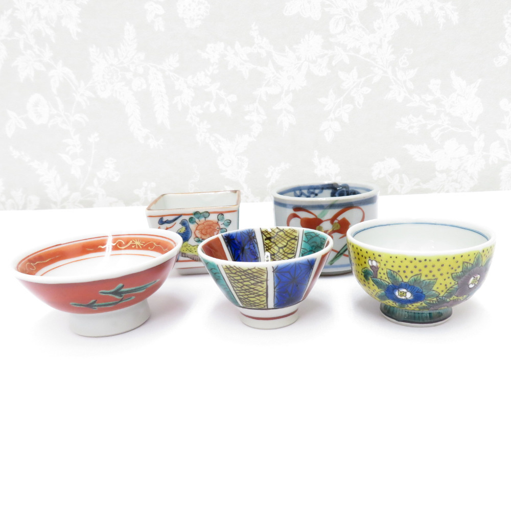 - 九谷焼 骨董・民芸品 食器 酒器 酒盃 おちょこ ぐい呑 5客組 九谷祥月 九谷泰幸 角福 まとめ売り