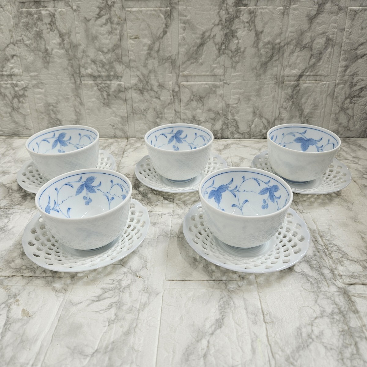 > 【未使用】 茶器 彩堂窯 唐草柄 5客 茶托付 煎茶揃 和食器 食器 コレクション