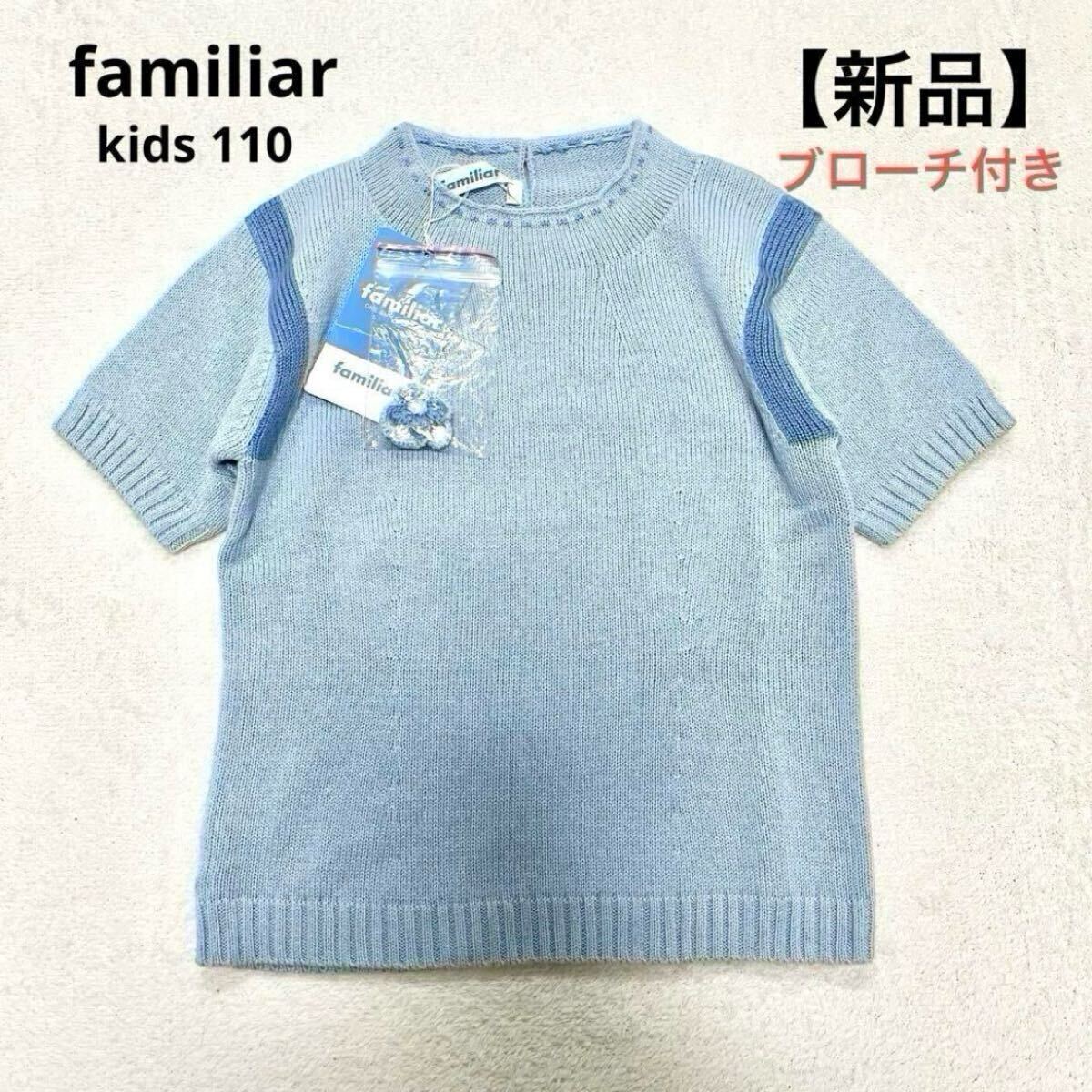 - 【新品】ファミリア familiar 半袖 ニット 110 アクリル コットン ブローチ付き 定価8190円