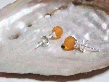 - マットハニーアンバー【天然琥珀】ボール型のシルバーピアス