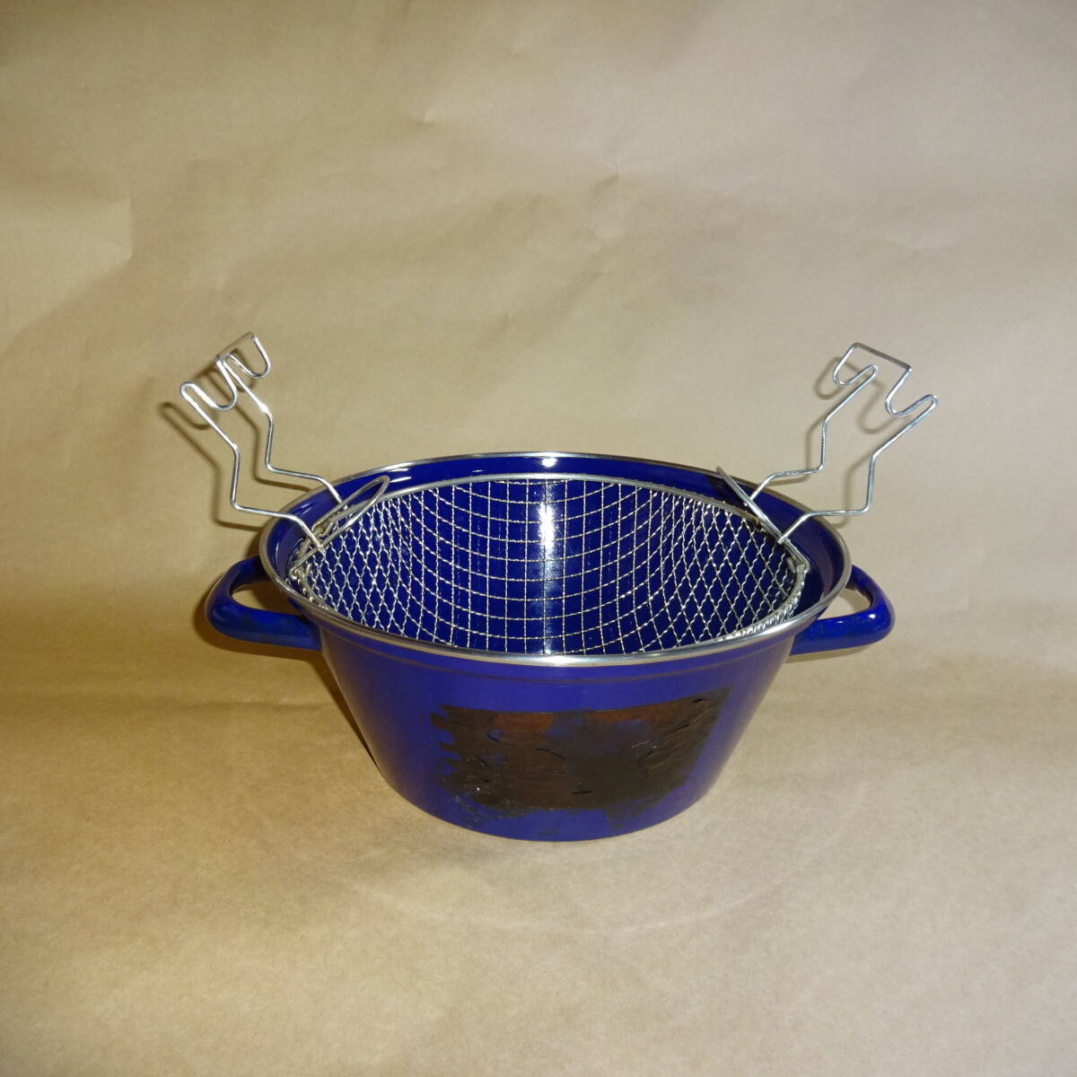 - 琺瑯油切りバスケット付き万能フライヤー ホーローフライヤー 大きいプリンの型にも♪