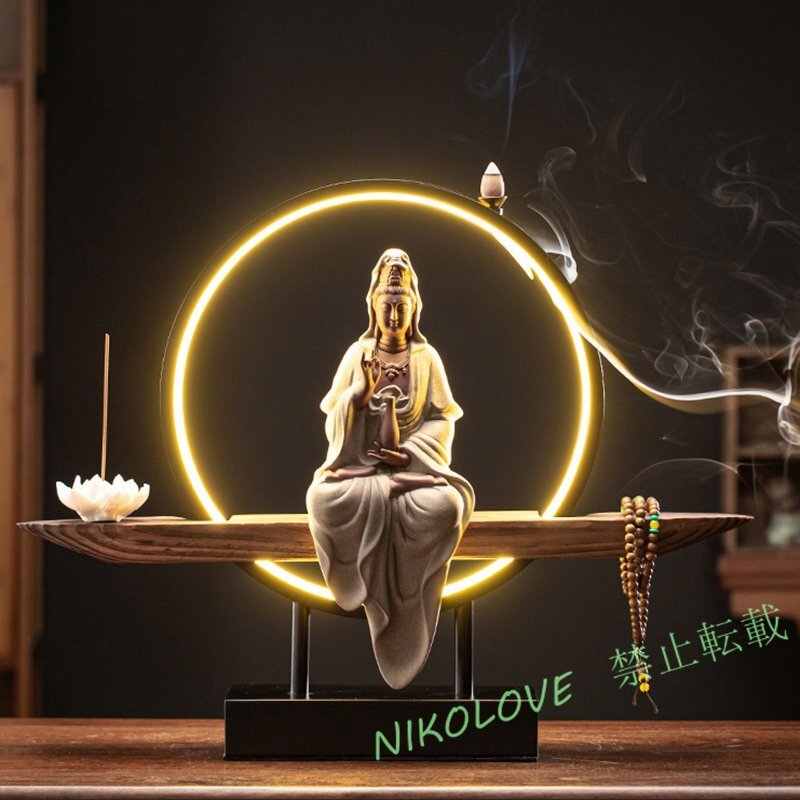 - 新品 感溢れる 禅の置物 玄関リビング観音仏像陶器の町家アイデア逆流香 装飾品 工芸品 仏教美術