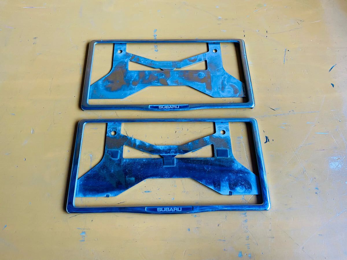 - 純正 スバル メッキ ナンバーフレーム ナンバー枠 前後 2点セット