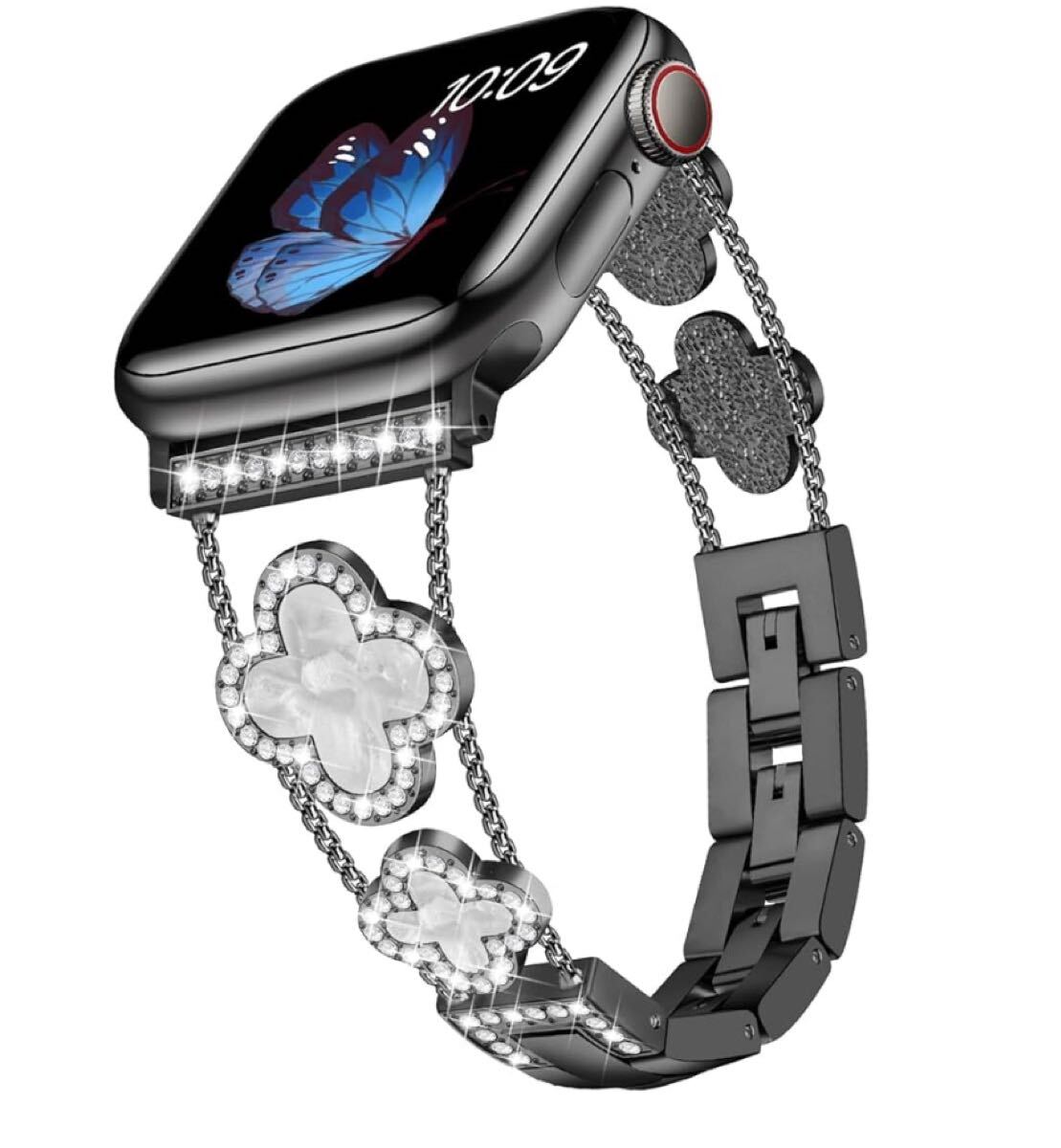 > ブリンブリン ダイヤモンド レディース バンドコンパチブル Apple Watch バンド 49mm 46mm 45mm 44mm 42mm 41mm 40mm 38mm Ultra(ブラック)