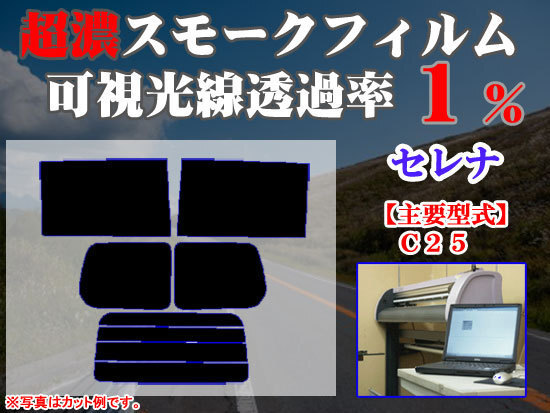 - 日産 セレナ C25 ストロングスモーク 透過率1% 超濃黒ウィンドウフィルム カット済みカーフィルム