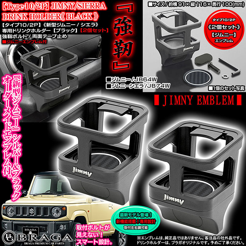 - 2個セット/新機能搭載/新型ジムニーエンブレム付/タイプ10/2P ブラック ジムニー/シエラJB64W/74W ドリンクホルダー/客注品/BG BRAGA