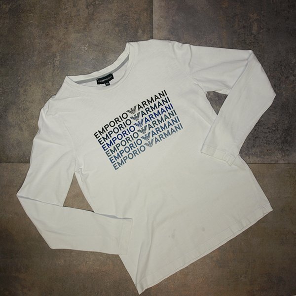 > EMPORIO ARMANI◇エンポリオアルマーニ・ロングスリーブTシャツ◇10A/142cm ブルー系ホワイト