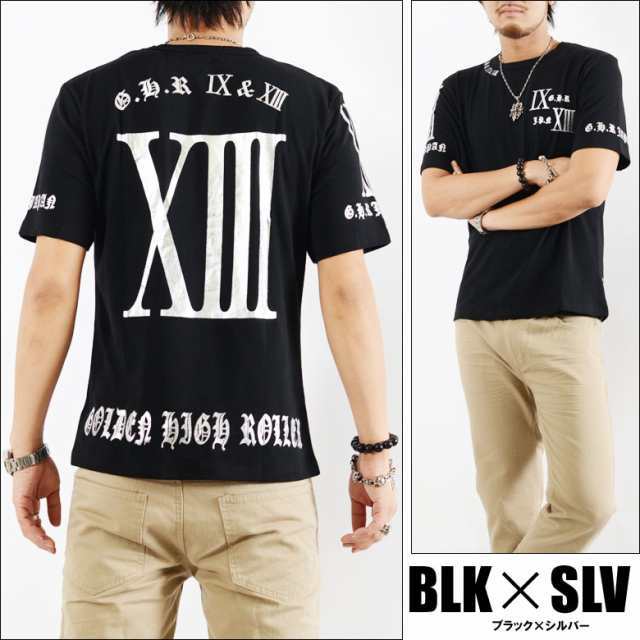 > G.H.R NINE&THIRTEENバックサーティーンプリント半袖Tシャツ 70726 新品 ブラックxシルバー M