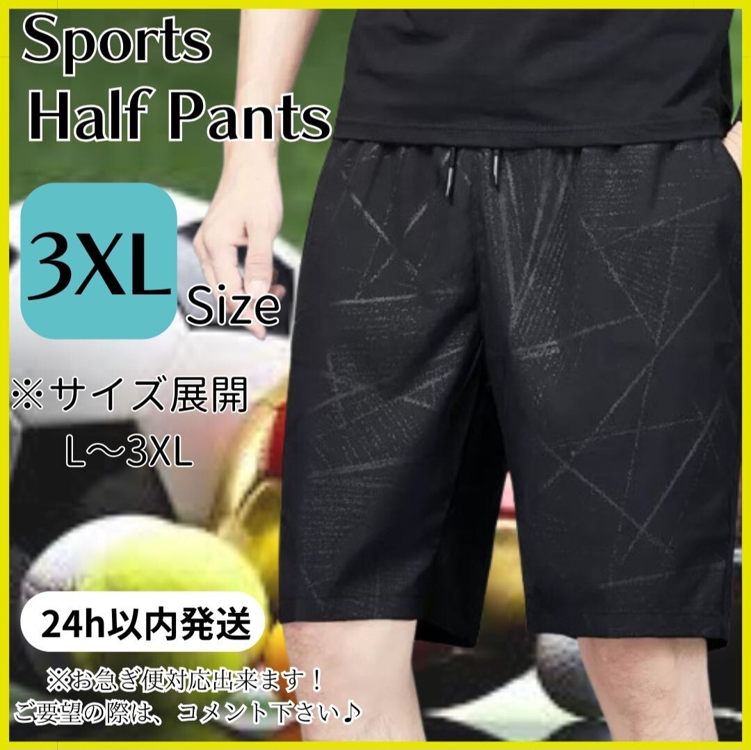 - 3XL ハーフパンツ メンズ スポーツ 膝丈 ひざ下 短パン ペンシル スプラッシュ ブラック 黒 伸縮性 速乾性 吸汗速乾 テニス サッカー