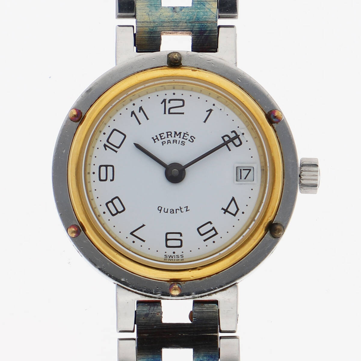 > HERMES エルメス クリッパー ホワイトダイヤル SS/GF クオーツ レディース【129620】