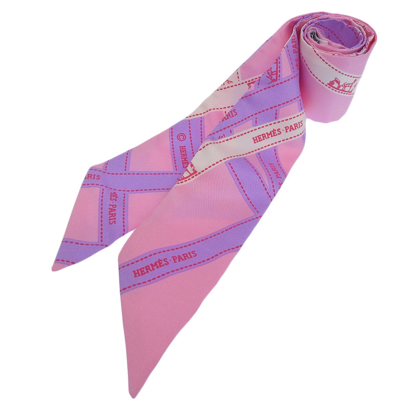- エルメス HERMES ツイリー ボルデュックリボン スカーフ シルク ピンク 中古 新入荷 HE1037