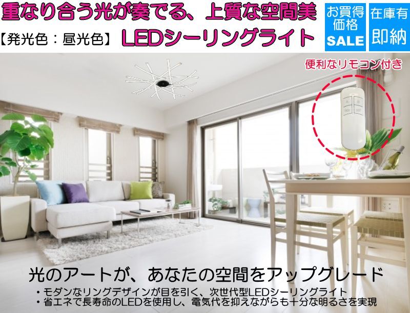 > 【セール価格】LEDシーリングライト 即納 昼光色 リモコン付 店舗 新築 リビング ベッドルーム イテリア デザインライト モダン【CG506】②