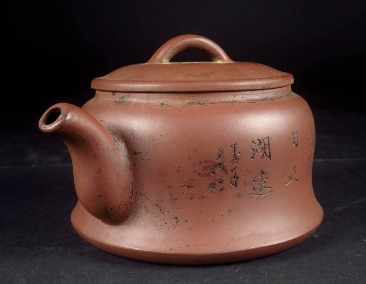 - 【SAKURAYA】中国古美術【唐物 朱泥 漢詩花鳥彫急須/底款 曼晞陶藝】蓋裏 在印 煎茶道具 茶道具 茶器 中国古玩 骨董品 古美術品