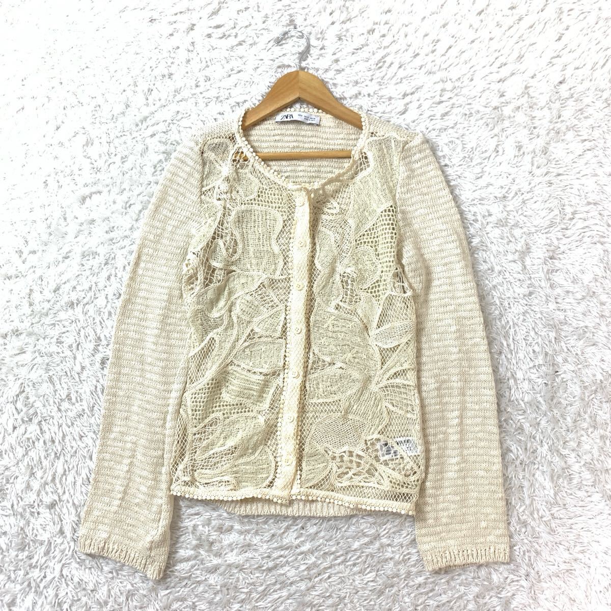 - ZARA ザラ カーディガン レース アイボリー コットン S YA9111