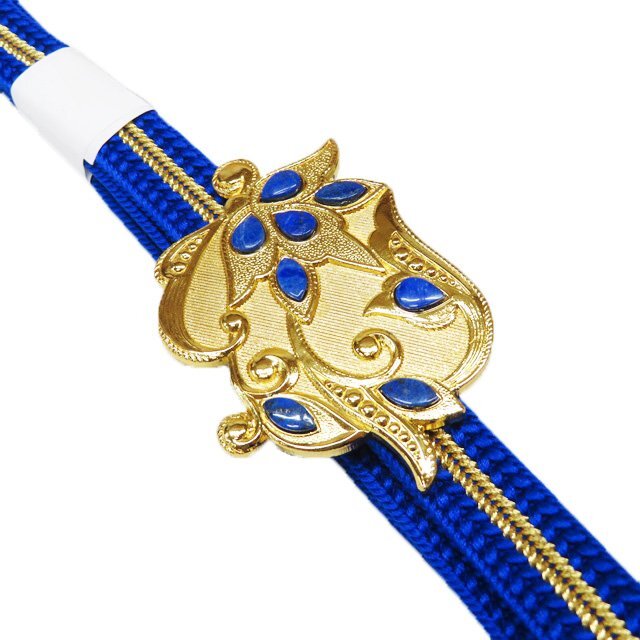 - 帯締め おびじめ 帯留め付き ラピスラズリ 和装小物 未使用 瑠璃色 金 きもの北條 A1180-3