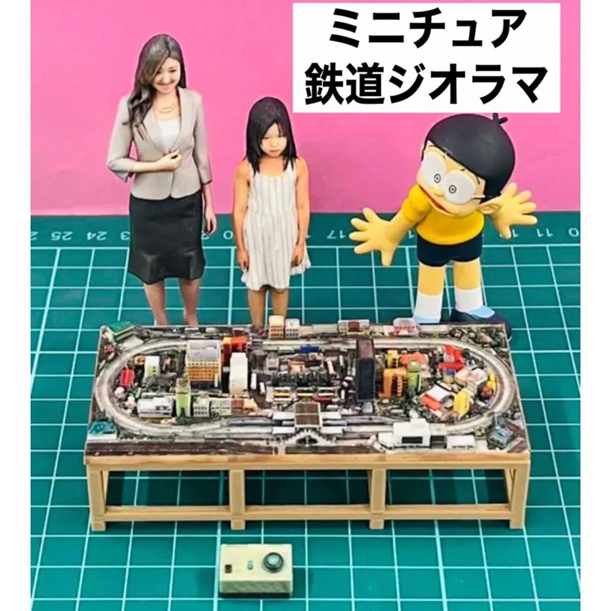 - ミニチュア★1/18★フィギュアに★1/64より小★ミニ鉄道模型と台★ジオラマ★ドールハウスに★レイアウト★Nゲージより小★シルバニアに